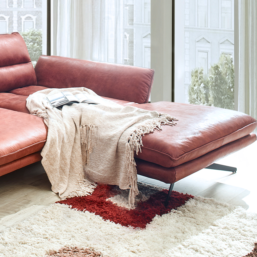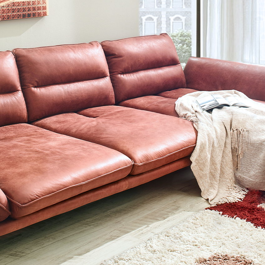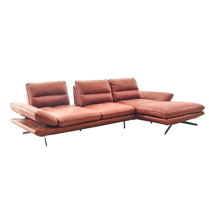 10270ML-BrickLeather Chaise Sofa