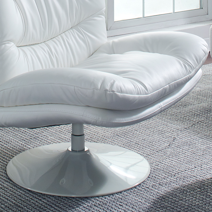 P017-White Leather Swivel Chair