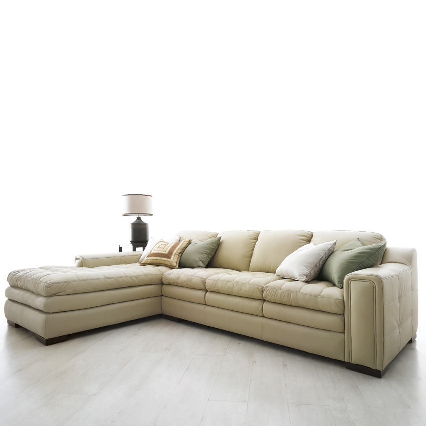 7491-Ivory Leather Chaise Sofa