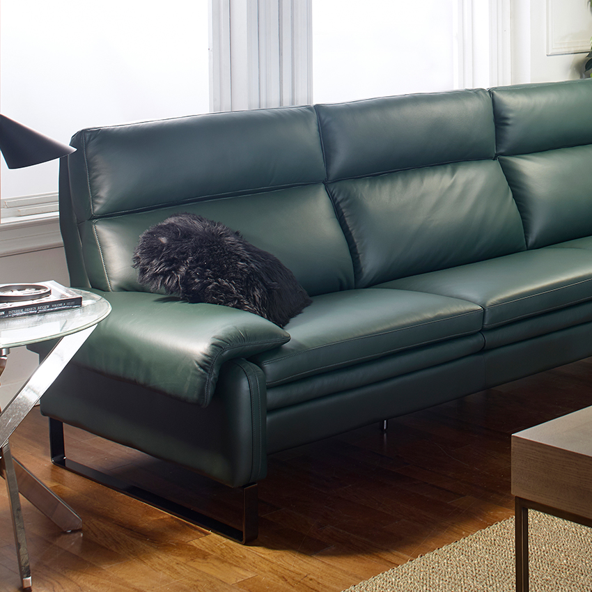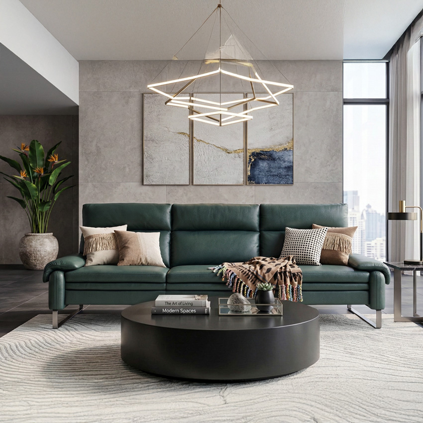 10659-GreenLeather Sofa